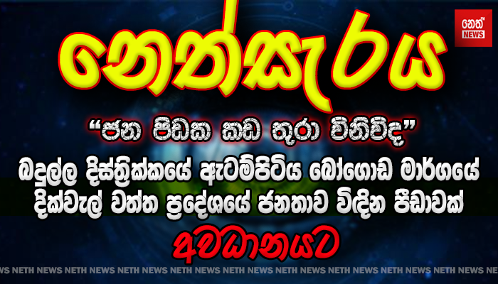 Breaking News Mr. Namal Rajapaksa “ආදරය” අරගෙන නාමල් අවතැන් වූ දරුවන්ට පොත්පත් පාසැල් උපකරණ ලබා දෙයි. December 7, 2025 4:15pm An invitation to Modi පුටින්ගෙන් මෝදිට ඇරයුමක් December 7, 2025 2:50pm දිරිය නෙත් – නැණ සවිය සමාජ සත්කාරයට අද දිනයේත් ජනතාවගෙන් ඉහළ ප්රතිචාර December 7, 2025 2:06pm Northeast monsoon ක්රමයෙන් ස්ථාපිත වන ඊසානදිග මෝසම December 7, 2025 1:43pm Dead animals ආපදාවෙන් මියගිය සතුන් කඩේට එයිද? December 7, 2025 1:39pm A phone number අත්යවශ්ය සේවා ලබා ගැනීමේදී ඇතිවන පැමිණිලි කියන්න දුරකථන අංකයක් December 7, 2025 1:33pm Responsibility of the public official රාජ්ය නිලධාරියාගේ වගකීම December 7, 2025 1:25pm A consignment of food arrives in Sri Lanka from Australia සබලකරන ලද ආහාර තොගයක් ඕස්ට්රේලියාවේන් මෙරටට . December 7, 2025 12:21pm Kataragama Basnayake election ජලගැලීම් මැද්දේ උණුසුම්වී ඇති කතරගම බස්නායක නිලවරණය December 7, 2025 12:13pm 123…687Next » More From Neth News kaṇin koṇin මහ විපත මැද රටම අඩද්දි, පාර්ටි 9ක් දාලා මගුල් කාපු මන්ත්රී 'Ditwa' ‘දිට්වා’ සුළිකුණාටුව හේතුවෙන් දිවයින පුරා සිදුවූ මරණ ගණන ඉහලට “නැණ සවිය” රටේ දරුවන්ගේ හෙට වෙනුවෙන් නෙත් අරඹන, දිරිය නෙත් “නැණ සවිය” anura kumara dissanayake ආර්ථිකයට ඔරොත්තු නොදෙන ව්යවසනය Health camps සෞඛ්ය කඳවුරු නිසා වෙච්ච පටලැවිල්ල
