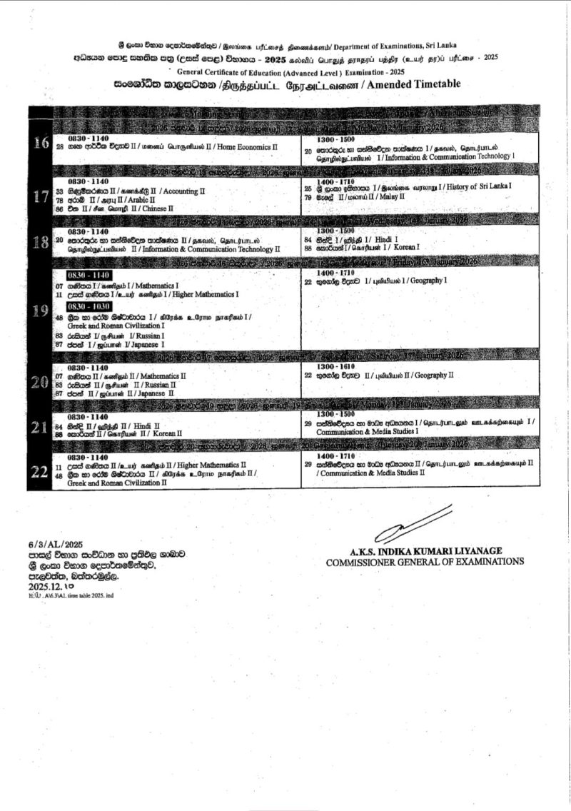 අයහපත් කාලගුණ තත්ත්වය හේතුවෙන් කල්දමා තිබු අ.පො.ස (උ.පෙළ) විභාගයේ නොපැවැත්වූ විෂයන් සඳහා වූ කාලසටහන විභාග දෙපාර්තමේන්තුව විසින් නිකුත් කර තිබෙනවා.