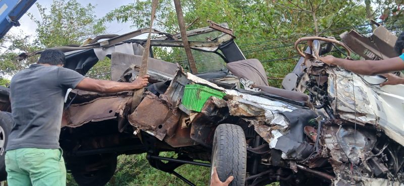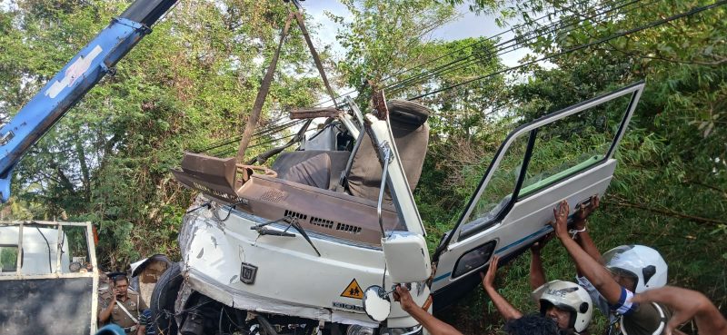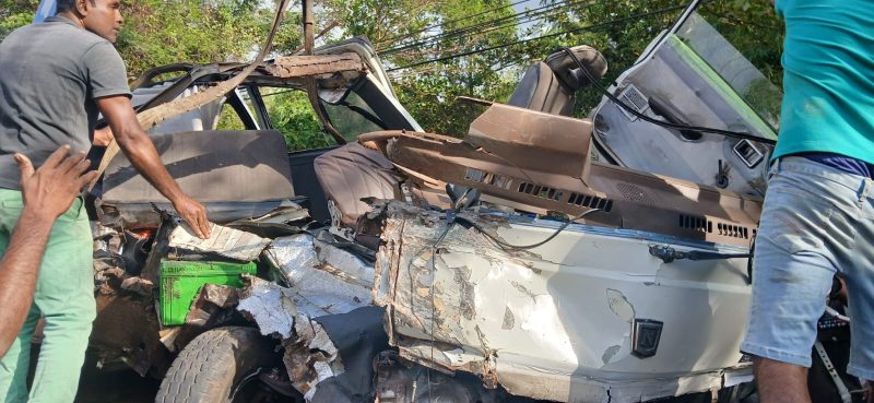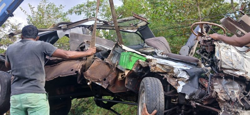 ඉදිරියෙන් පැමිණ ඇති ටිපර් රථයක, වෑන් රථය මුහුණට මුහුණ ගැටීමෙන් අනතුර සිදුවී ඇති බව පොලිසිය පැවසුවා.