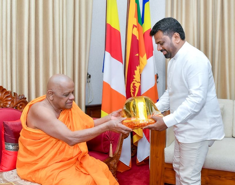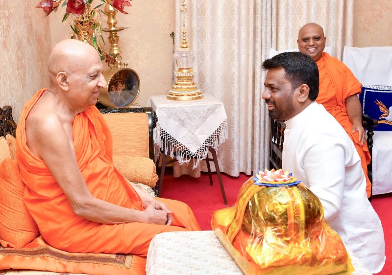 ජනාධිපති අනුර කුමාර දිසානායක මහතා අද දහවල් මල්වතු සහ අස්ගිරි පාර්ශ්වයේ මහා නා හිමිපාණන් වහන්සේලා බැහැදැක ආශිර්වාද ලබා ගත්තා. පළමුව, මල්වතු මහා විහාරය වෙත පැමිණි ජනාධිපතිවරයා මල්වතු මහා නායක අතිපූජ්‍ය තිබ්බටුවාවේ ශ්‍රී සුමංගල නායක හිමිපාණන් වහන්සේ බැහැදැක සුවදුක් විමසා කෙටි පිළිසඳරක නිරත වී තිබෙනවා. ඉන් අනතුරුව ජනාධිපති අනුර කුමාර දිසානායක මහතා, අස්ගිරි මහා විහාරය වෙත ගොස් අස්ගිරි පාර්ශ්වයේ මහා නායක අතිපූජ්‍ය වරකාගොඩ ශ්‍රී ඥානරතන නායක හිමිපාණන් වහන්සේද බැහැදැක සුව දුක් විමසමින් කෙටි පිළිසඳරක නිරත වූ බවයි ජනාධිපති මාධ්‍ය අංශය පැවසුවේ. සියම් මහා නිකායේ අස්ගිරි පාර්ශ්වයේ අභිනව අනුනායක ධුරයට පත් වූ පූජ්‍ය නාරම්පනාවේ ආනන්ද හිමියන් හට සන්නස් පත්‍රය පිළිගැන්වීම ජනාධිපති අනුර කුමාර දිසානායක මහතා අතින් අද සිදු වුණා. ඒ මහනුවර ශ්‍රී දළදා මාලිගා පරිශ්‍රයේ පිහිටි ඓතිහාසික මඟුල් මඩුවේදීයි. අස්ගිරි පාර්ශ්වයේ කටයුතු කළ පූජ්‍ය ආනමඩුවේ ධම්මදස්ස හිමි අපවත්වීමෙන් පසු පුරප්පාඩු වු අනුනායක පදවිය සඳහා අස්ගිරි මහා සංඝ සභාවේ එකඟත්වයෙන් පූජ්‍ය නාරම්පනාවේ ආනන්ද නාහිමි පත් කරනු ලැබුවා.