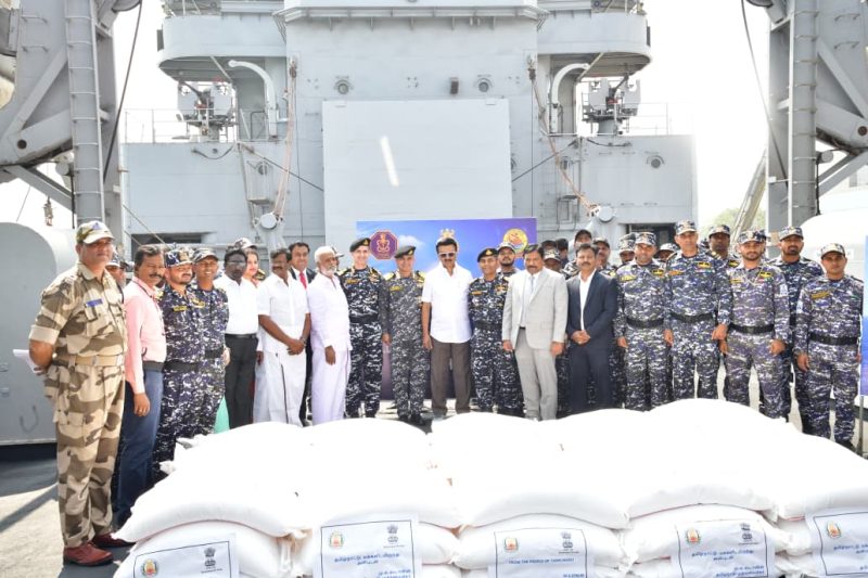 ‘දිට්වා’ සුළි කුණාටුව හේතුවෙන් ශ්රී ලංකාවේ ආපදාවට ලක් වූ ජනතාවට බෙදා දීම සඳහා සීනි, පරිප්පු, කිරි පිටි සහ රෙදිපිළි රැගත් එම නෞකාව තමිල්නාඩු මහඇමති එම්. කේ. ස්ටාලින් මහතාගේ ප්රධානත්වයෙන් මෙරටට පිටත් කර හැර තිබෙනවා.