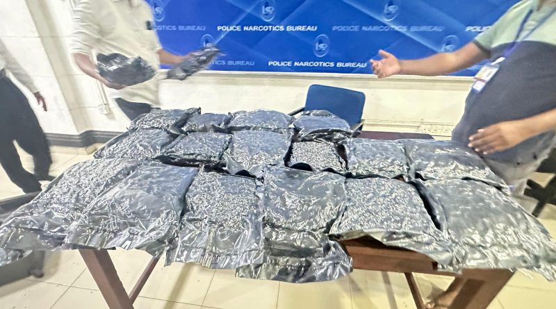 මේ සියල්ල හොදින් නිරීක්ෂණය කරමින් සිටි පොලිස් මත්ද්රව්ය කාර්යාංශයේ නිලධාරීන් මෙම ව්යාපාරිකයා නිවෙසට පැමිණි පසු , නිවෙස වටලා ඒ වනවිටත් සිය නිවසෙහි විවෘත නොකළ ගමන් මල්ල තුළ ඇසුරුම් 20 කට සකස් කර තිබූ "කුෂ්" මත්ද්රව්ය කිලෝ ග්රෑම් 21 යි ග්රෑම් 668 ක තොගයක් අත් අඩංගුවට ගෙන තිබෙනවා.