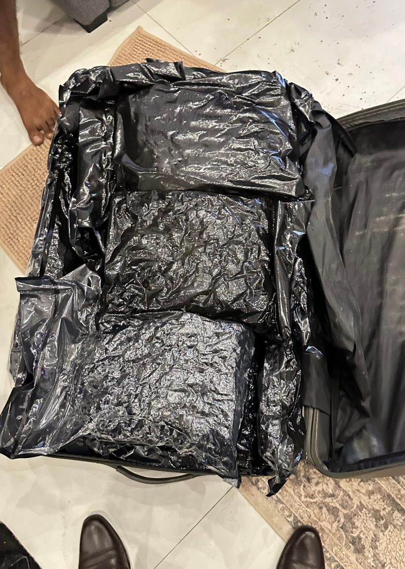 ඒ අනුව 13 වන දැන් දින මෙම මත්ද්රව්ය තොගය අඩංගු ගමන් මල්ල වෙනත් පුද්ගයෙකු අත එවා ඇති අතර එය කටුනායක ගුවන් තොටුපොළෙන් පිට කර ගෙන මෙම ජාවාරම්කරුවාගේ නිවසට රැගෙන ගොස් භාර දී ඇති අතර මෙම ජාවාරම්කරුවා ඊයේ(14) දින අත් බෑගයක් පමණක් රැගෙන තායිලන්තයේ බැංකොක් නුවර සිට පැමිණ තිබුණා.