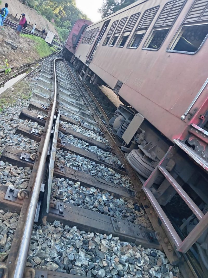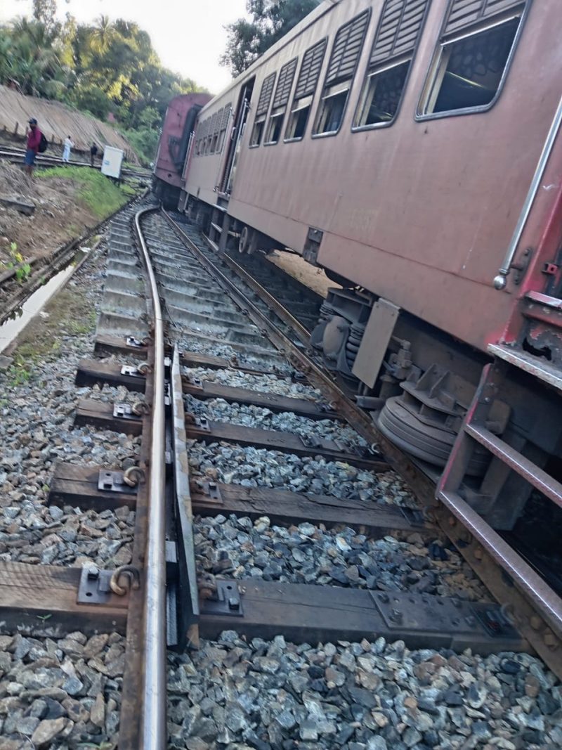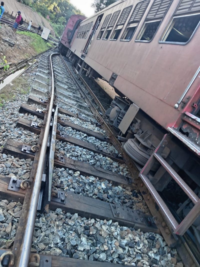 මෙසේ එම දුම්රියේ මැදිරියක රෝද කිහිපයක් පිලී පැනීමකට ලක්ව ඇත.