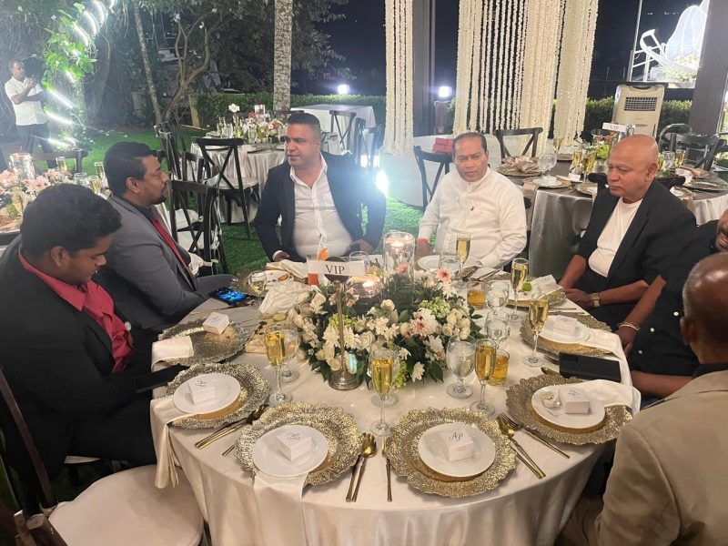 ඊයේ (17) දින ප්රසිද්ධ මාධ්යවේදියෙකුගේ පුතෙකුගේ විවහා උත්සවයකට සහභාගී වූ පක්ෂ විපක්ෂ දේශපාලකයන් පිරිසක් දේශපාලන විරසකකම් පසෙක තබා දේශපාලනයට එහා සංවාදයකට එකතු වී තිබෙනවා.