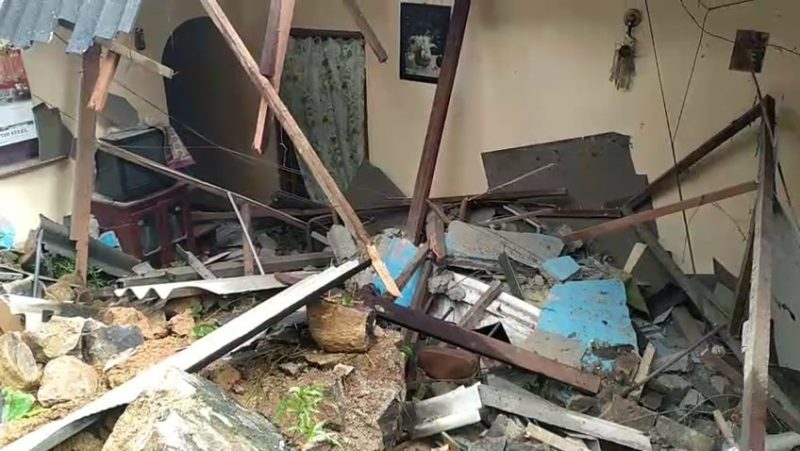 ආරක්ෂිත පැති බැම්ම කඩා වැටීමෙන් නිවසේ නිදන කාමර දෙකකට සහ මුළුතැන්ගෙට දැඩි අලාභ හානි සිදු වී තිබෙනවා.