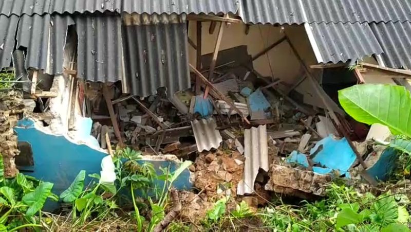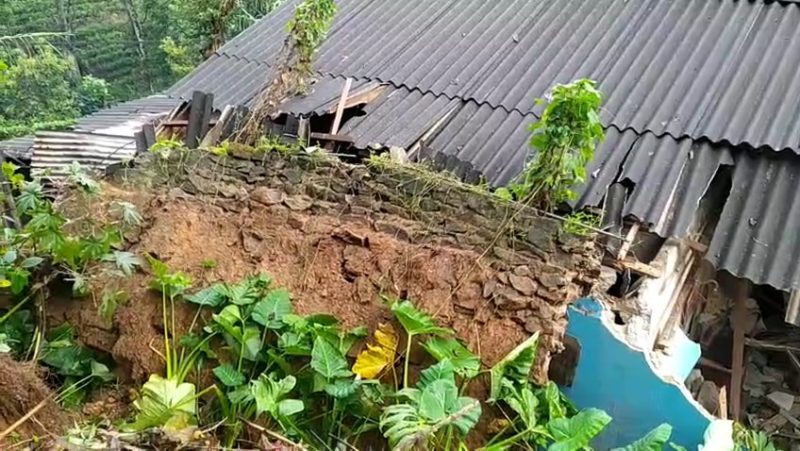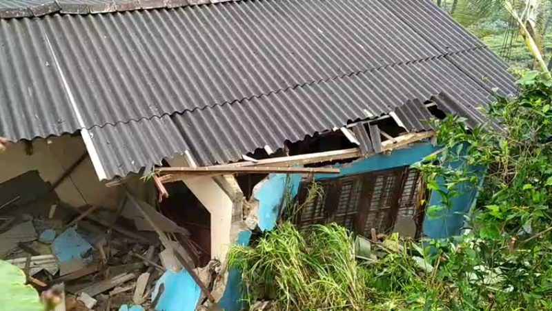 ආරක්ෂිත පැති බැම්ම කඩා වැටීමෙන් නිවසේ නිදන කාමර දෙකකට සහ මුළුතැන්ගෙට දැඩි අලාභ හානි සිදු වී තිබෙනවා.