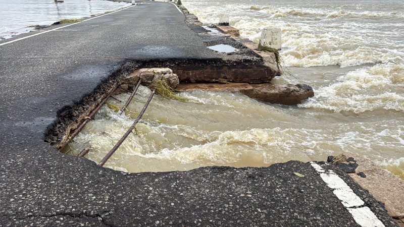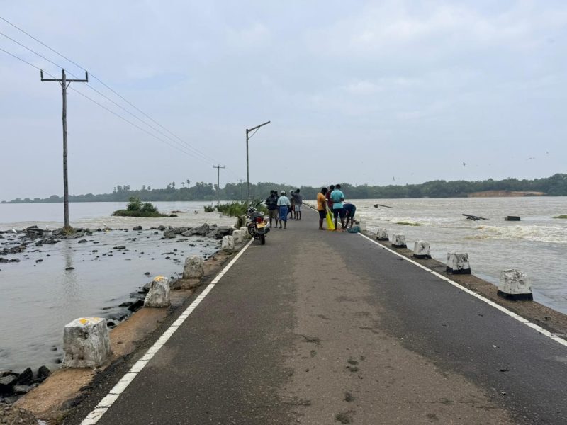 මුලතිව් සිට පරන්තන් දක්වා දිවෙන මාර්ගයේ නන්දිකඩාල් කලපුව හරහා වැටී ඇති පාලමේ කොටස් දෙකක් කැඩී යාම හේතුවෙන් පාලම හරහා ගමනාගමන කටයුතු සියල්ල නවතා දමා ඇති බවද දිස්ත්‍රික් ආපදා කළමනාකරණ මධ්‍යස්ථානය පැවසීය.