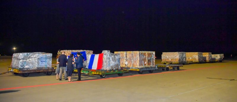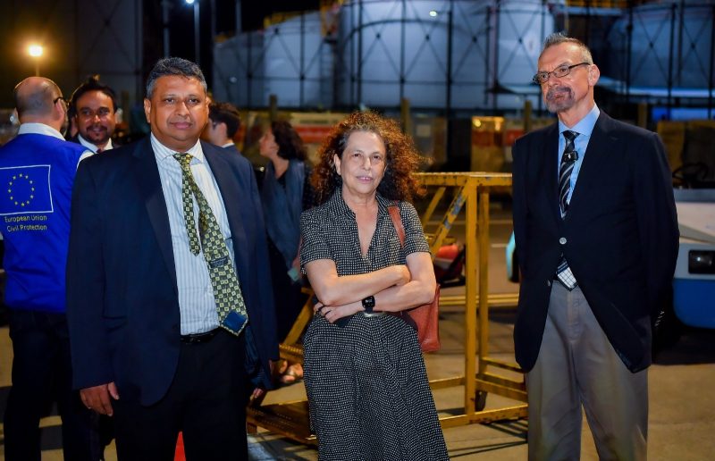 ශ්‍රී ලංකාවේ යුරෝපා සංගම් තානාපති Carmen Moreno, ප්‍රංශ තානාපති Rémi Lambert සහ ජර්මානු තානාපති කාර්යාලයේ නියෝජ්‍ය දූත මණ්ඩල ප්‍රධානී Sarah Hasselbarth යන මහත්ම මහත්මීන් විසින් එම මානුෂීය ආධාර තොගය මෙරටට නිල වශයෙන් භාර දුන් අතර ශ්‍රී ලංකා රජය වෙනුවෙන් විදේශ කටයුතු, විදේශ රැකියා සහ සංචාරක අමාත්‍යාංශයේ යුරෝපය සහ උතුරු ඇමරිකාව සඳහා අධ්‍යක්ෂ ජනරාල් සුගීෂ්වර ගුණරත්න සහ ආපදා කළමනාකරණ මධ්‍යස්ථානයේ අධ්‍යක්ෂ චතුර ලියනාරච්චි යන මහත්වරු එම අවස්ථාවට එක්ව සිටියා.