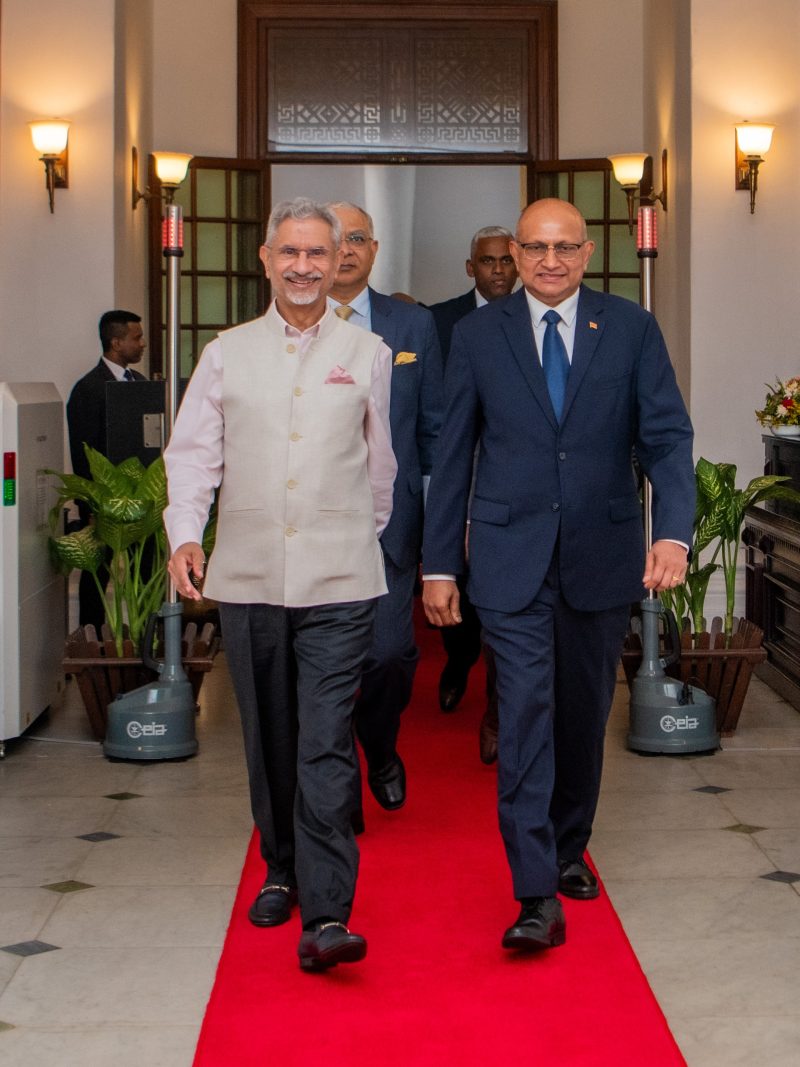 මෙරටට පැමිණ සිටින ඉන්දීය විදේශ කටයුතු අමාත්ය එස්. ජයශංකර් මහතා සහ ජනාධිපති අනුර කුමාර දිසානායක මහතා අතර හමුව අද පෙරවරුවේ ජනාධිපති කාර්යාලයේදී පැවැත්වුණා.