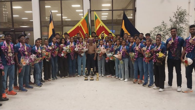 ඉන්දියාවේ පැවති 04 වන දකුණු ආසියානු ජ්‍යේෂ්ඨ මළළ ක්‍රීඩා තරගාවලියට සහභාගී වී එම තරඟාවලියේ අනු ශූරතාව හිමි කරගත් ශ්‍රී ලංකා මළළ ක්‍රීඩා කණ්ඩායම අද අලුයම යළි දිවයිනට පැමිණියා.
