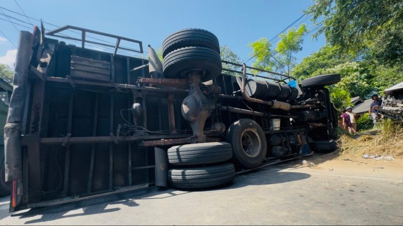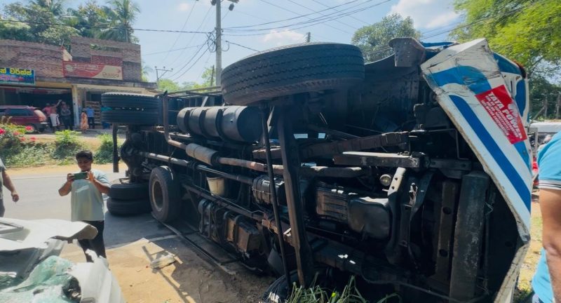 එම අනතුර නිසා ලොරි රථය මාර්ගය හරහා පෙරලී ගොස් ඇති අතර එක් මන්තීරුවක ගමනාගමනයටත් බදා එල්ල වී තිබෙනවා.