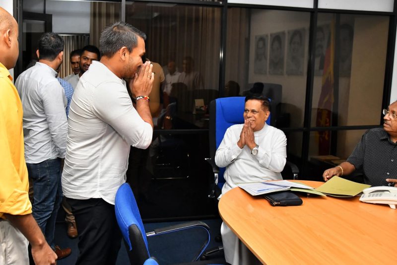 පාර්ලිමේන්තු මන්ත්‍රී නාමල් රාජපක්ෂ ජොන්ස්ටන් ප්‍රනාන්දු ඩි වී චානක සංජිව එදිරිමාන්න යන අය අද දින ශ්‍රී ලංකා නිදහස් පක්ෂ කාර්යාලය වෙත පැමිණියා.