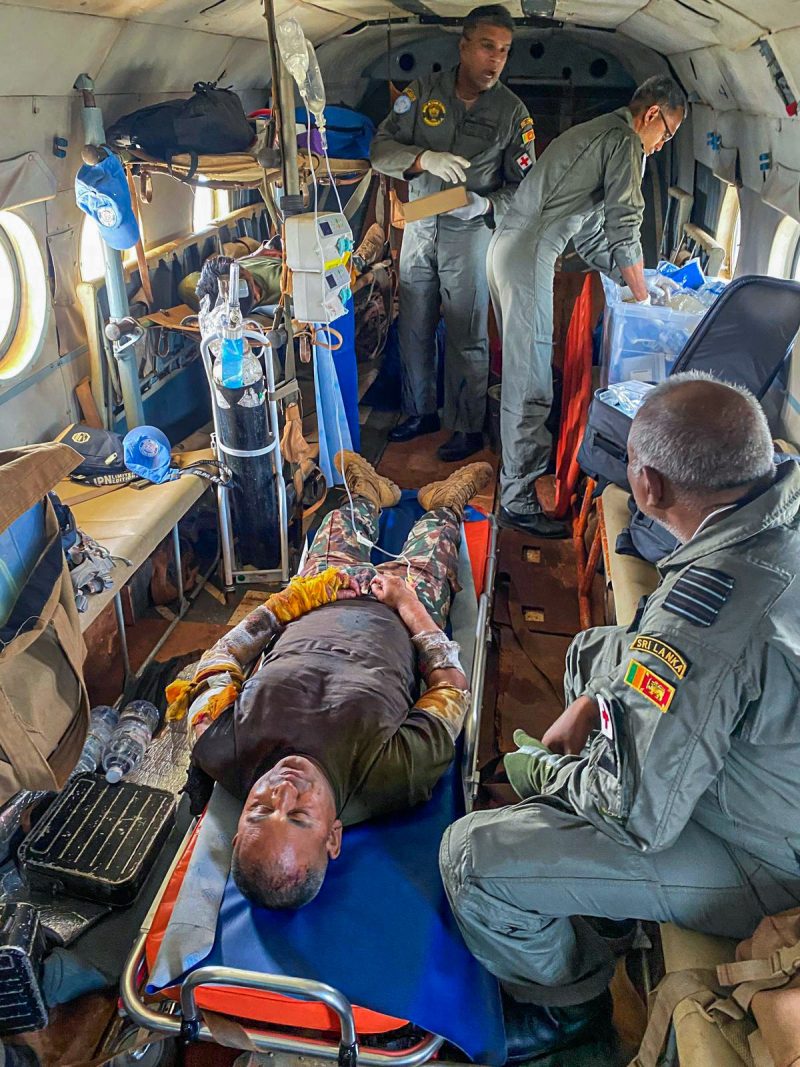 ගුවන් කාර්ය මණ්ඩලය සහ වෛද්‍ය කණ්ඩායම විසින් තුවාල ලැබූ නිලධාරීන් හට ගුවන් ගමන පුරා අවශ්‍ය වෛද්‍ය ප්‍රතිකාර ලබා දී තිබෙන අතර පැයයි මිනිත්තු 45ක ගුවන් ගමනකින් පසු තුවාල ලැබූ නිලධාරීන් ආරක්ෂිතව වැඩිදුර වෛද්‍ය ප්‍රතිකාර සඳහා බන්ගුයි නගරය වෙත ප්‍රවාහනය සිදු කරන ලැබුවා.