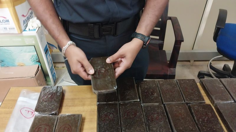 ඔහු විසින් රැගෙන ආ ගමන් මල්ලේ සඟවා තිබී “හෂීෂ්” මත්ද්රව්ය කිලෝ ග්රෑම් 18යි ග්රෑම් 253ක ප්රමාණයක් සොයා ගෙන තිබෙනවා.