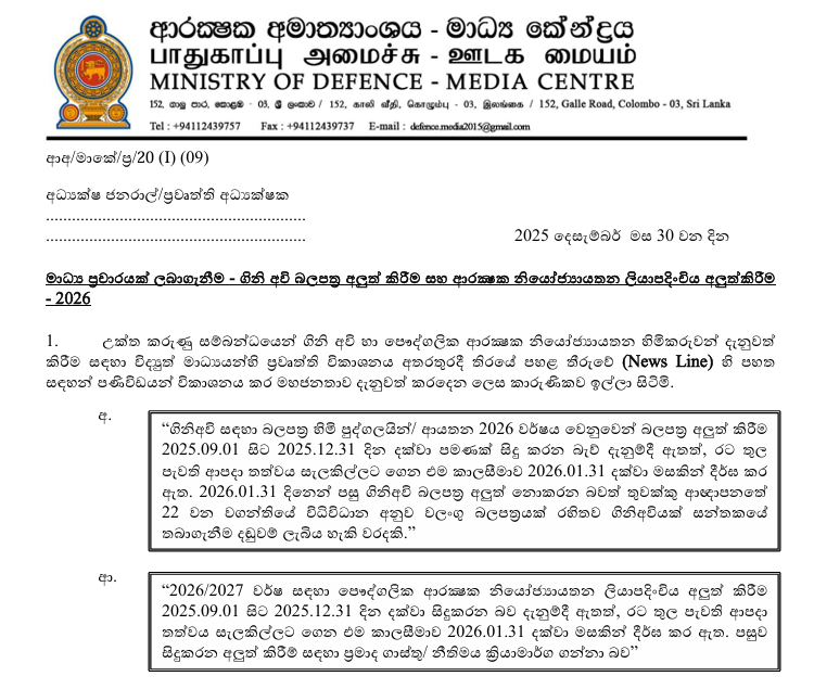 ගිනි අවි බලපත්ර අලුත් කිරීමේ නවතම නිවේදනයක් නිකුත් කර තිබෙනවා.