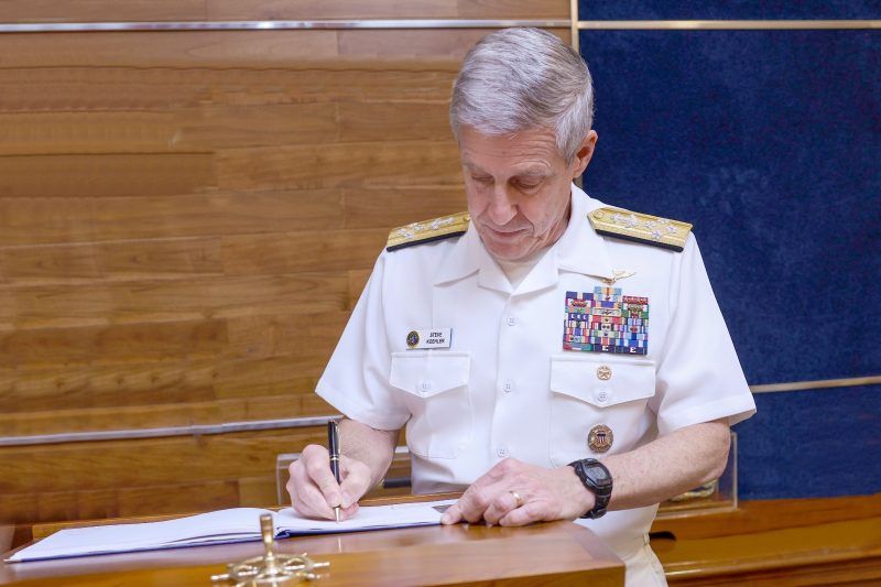 ශ්‍රී ලංකාවේ තෙදින නිල සංචාරයක් සඳහා 2026 පෙබරවාරි මස 19 වැනි දින දිවයිනට පැමිණි, එක්සත් ජනපද පැසිෆික් නාවික බලඇණියේ අණදෙන නිලධාරී, අද්මිරාල් Stephen T. Koehler ඊයේ (20) නිල හමුවක් සඳහා නාවික හමුදා මූලස්ථානයේදී නාවික හමුදාධිපති, වයිස් අද්මිරාල් කාන්චන බානගොඩ හමුවි තිබෙනවා.