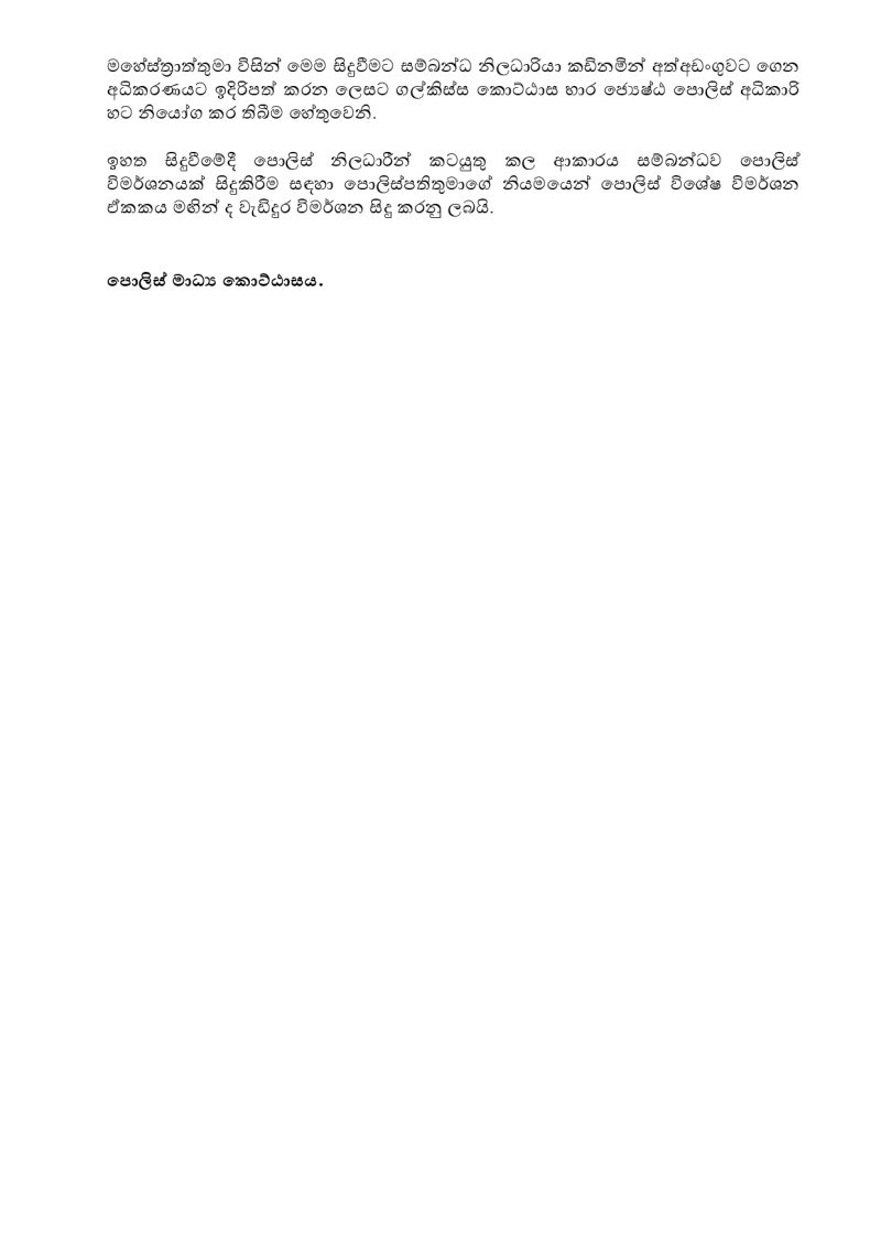 මේ සම්බන්ධයෙන් පොලිස් මාධ්ය කොට්ඨාශය නිකුත් කල නවතම නිවේදනය පහතින්