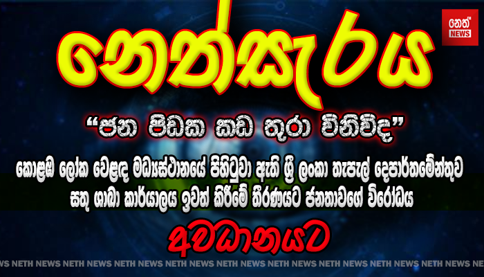 ada net særayen කොළඹ ලෝක වෙළඳ මධ්යස්ථානයේ පිහිටුවා ඇති ශ්රී ලංකා තැපැල් දෙපාර්තමේන්තුව සතු ශාඛා කාර්යාලය ඉවත් කිරීමේ තීරණයට ජනතාවගේ විරෝධය September 21, 2025 10:08am