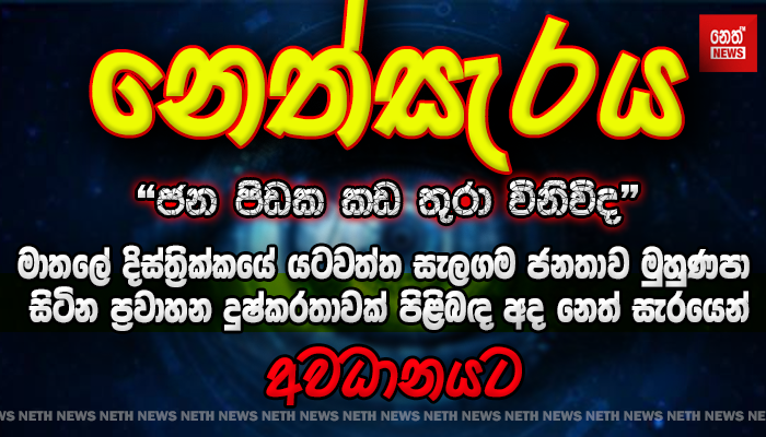 මාතලේ දිස්ත්රික්කයේ යටවත්ත සැලගම ජනතාව මුහුණපා සිටින ප්රවාහන දුෂ්කරතාවක් පිළිබඳ අද නෙත් සැරයෙන් October 1, 2025 2:00pm