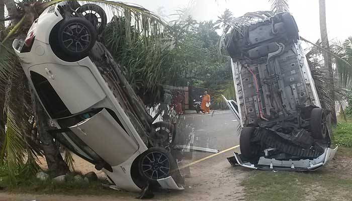 පාරෙන් ඉවතට පැන්න වාහනේ අන්තිමට නතරවුණ තැන